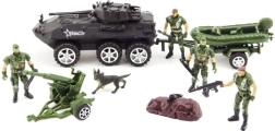 Deze legerset biedt alles wat kinderen nodig hebben voor avontuurlijk soldatenspel. De gedetailleerde figuren met wapens, aangevuld met een pantservoertuig, een kanon, een boot en een hond, prikkelen de verbeelding en maken het mogelijk om uiteenlopende actiescènes te creëren. Onderdelen zijn van duurzaam kunststof en sommige elementen zijn eenvoudig te monteren.