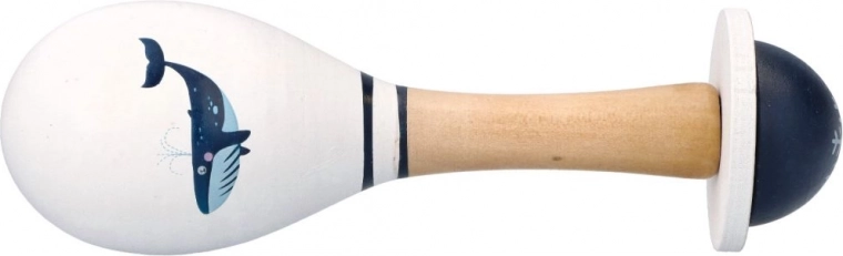 Een schattige houten maracas met walvismotief is het ideale eerste muziekinstrument voor de allerkleinsten. Het ondersteunt de ontwikkeling van ritme, auditieve stimulatie en fijne motoriek. Veilige verven en een comfortabele houten handgreep zorgen voor prettig en veilig spelen voor kinderen vanaf 5 maanden.