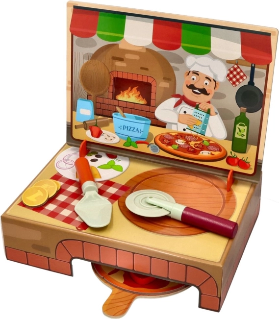 Kinderen kunnen zich verkleden als chef-koks en met houten tools en afneembare toppings pizza’s bereiden voor familie en vrienden. Dit speelgoed biedt niet alleen uren speelplezier, maar wekt ook interesse in koken en een gezonde voeding.
