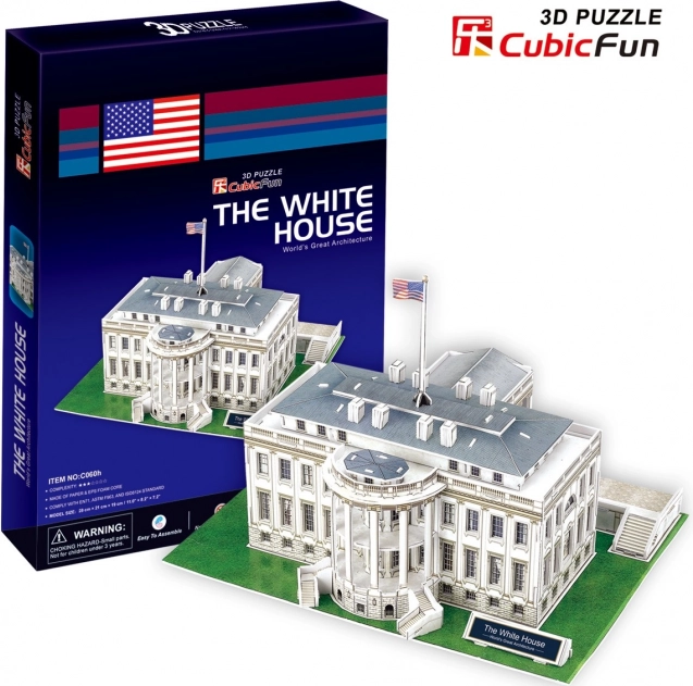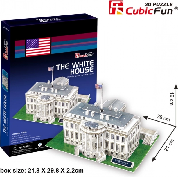Bouw het iconische Witte Huis als realistische 3D-puzzel van CUBICFUN. 64 stukjes van stevig foam met bedrukt laminaat zijn eenvoudig te monteren zonder lijm en schaar. Moeilijkheid 4/7, bouwtijd 150–180 minuten. Een geweldig cadeau, educatief spel en stijlvolle decoratie.
