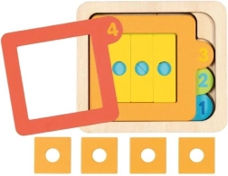 Deze meerlagige puzzel helpt kinderen bij het leren van de basis van wiskunde, het herkennen van grootteverschillen, vormen en cijfers. Een geweldig hulpmiddel om logisch denken te bevorderen, het herkennen van kleuren en vertrouwd raken met cijfers.
