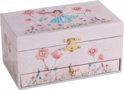 De betoverende Goki Pixie muziekjuwelendoos is ideaal voor het opbergen van ringen, oorbellen en kleine accessoires. Na het openen weerklinkt de zachte melodie van Het Zwanenmeer en begint het kleine ballerinafiguurtje te draaien voor de spiegel – een prachtige dagelijkse ritueel.