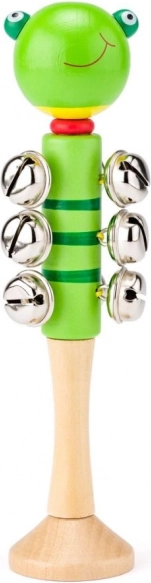 Ontdek de magie van muziek met schattige rammelaars met dierenmotieven. Elke rammelaar heeft een comfortabele houten handgreep en meerdere metalen belletjes die bij het schudden een helder, vrolijk geluid geven. Perfect voor de eerste muzikale stapjes, samenspel en een mini-orkest thuis.