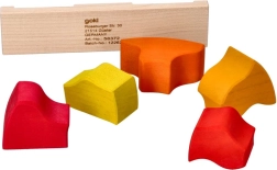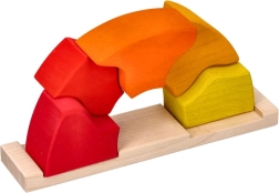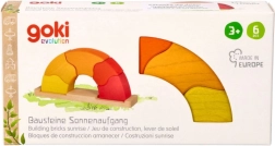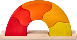 De houten puzzel Zonsopgang van GOKI biedt kinderen en ouders plezier in het ontdekken. Kleurrijke bogen in tinten geel, oranje en rood worden op een houten basis gelegd en nodigen uit tot experimenteren, bouwen en vrij creatief spel. Het speelgoed ontwikkelt op natuurlijke wijze oog-handcoördinatie, geduld en de basisprincipes van evenwicht.