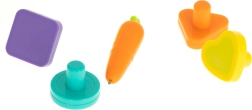 De interactieve elementen brengen dierengeluiden, geluiden van voertuigen, geluiden uit het huishouden en vrolijke melodieën. Het speelgoed heeft 2 geluidsniveaus en de mogelijkheid om het geluid volledig uit te schakelen. De pen in wortelvorm geeft bij het insteken in het “bekje” van het paardje een knapperend effect. De randen van het bord zijn versierd met verhoogde letters en cijfers – ideaal voor een eerste kennismaking met vormen.