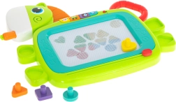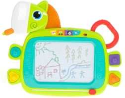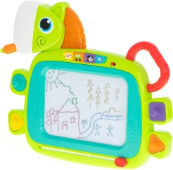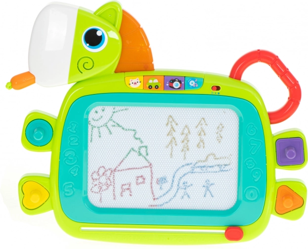 Het magnetische bord van HOLA is een geweldige keuze voor de ontwikkeling van creativiteit en fijne motoriek. Dankzij vier gekleurde zones ontstaan er tekeningen in aantrekkelijke kleuren die kinderen leuk vinden. Met één beweging van de schuifregelaar wis je het oppervlak en is het klaar voor nieuwe ideeën. De paardenvorm met een oplichtende manen en vrolijke geluiden motiveert kinderen om te spelen.