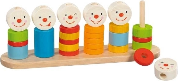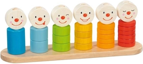 Kinderen oefenen hun fijne motoriek en logisch denken door ringen in lagen op de pinnen te schuiven.