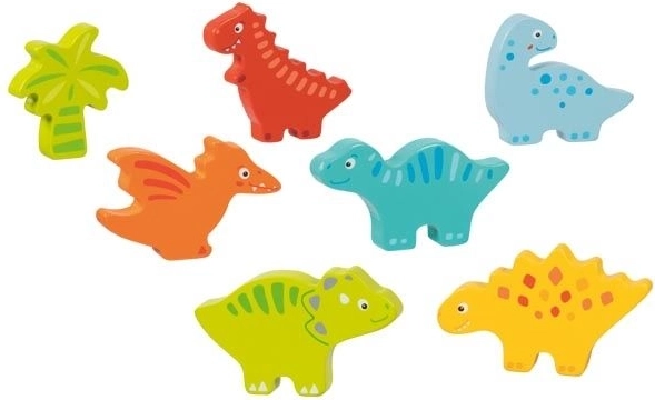 Deze inlegpuzzel is ideaal voor jonge kinderen die de wereld van dinosaurussen willen ontdekken. De puzzel ligt op een houten basis, wat het leggen vergemakkelijkt, en speciale kaders zorgen ervoor dat de afzonderlijke houten stukjes op hun plaats blijven.