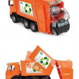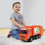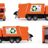 Functionele elementen zorgen voor leuk en authentiek spel: de vuilnisbakken kunnen worden aangeboden voor het laden, de laadbak kantelt en een veiligheidsvergrendeling voorkomt per ongeluk losschudden van de lading. In de doos vind je 1× kleine en 1× grote vuilnisbak, zodat het kind “afval” kan sorteren en vervoeren zoals echte vuilnismannen.
