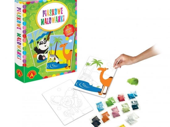Een populair kunstzinnig kinderspel met schilderen met zand, waarbij geleidelijk de afzonderlijke voorgesneden elementen van de afbeelding worden onthuld om het kleverige oppervlak bloot te leggen. De onthulde delen worden bestrooid met zand, in de kleur van het patroon of naar eigen fantasie, en zo ontstaat er een prachtige illustratie.