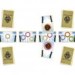 Geïllustreerde kaarten met ringen, quaffles en afdelingssymbolen brengen de magische sfeer rechtstreeks naar de tafel.
