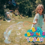 Het gebruik is eenvoudig: dompel het hulpmiddel in de TUBAN-oplossing en maak met zachte bewegingen reuzenbellen. Regenboogbellen en tunnels zullen elke kleine avonturier zeker fascineren. Plezier vol lachen en vreugde is gegarandeerd.