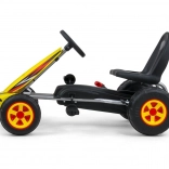 Trapgokart VIPER voor kinderen is ontworpen met veiligheid en comfort in gedachten. Dankzij de grote schuimwielen met gekleurde velgen kunnen kinderen genieten van een vloeiende rit, zelfs op oneffen oppervlakken. Het frame is verstevigd met stalen steunen en een handrem zorgt voor een veilige stop. De stoel is ergonomisch met een tweestaps verstelbare afstand tot het stuur, waardoor het kart mee kan groeien met uw kind. De VIPER wordt aanbevolen voor kinderen vanaf 3 jaar.