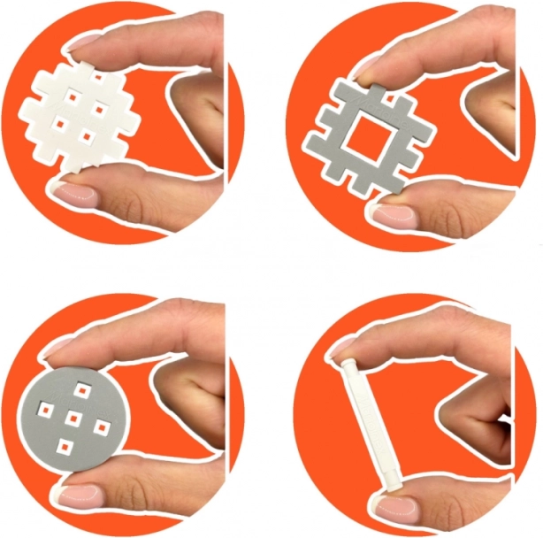 Maar liefst 301 stukjes in 27 vormen – van basisblokjes en verbindingsstukken tot speciale elementen. Bouw huizen, auto’s, machines en originele constructies en prikkel elke dag de fantasie.
