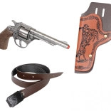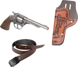 Beleef de sfeer van het Wilde Westen met de kwaliteitsvolle metalen revolver van GONHER. Het realistische design, het fijne gewicht en het betrouwbare mechanisme voor 8 patronen maken van dit speelgoed een geweldige aanvulling voor cowboy- en indianenspellen en een stijlvol verzamelstuk.