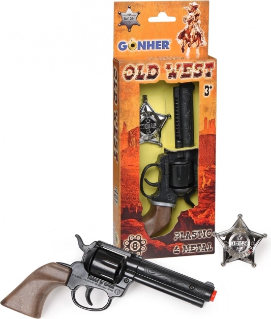 De cowboyset van GONHER is een hit bij alle westernliefhebbers. De lichte kunststof constructie is ideaal voor kinderhanden, terwijl de realistische look en sound het spel nog leuker maken. De meegeleverde sherrifbadge maakt de verkleedoutfit compleet en prikkelt de fantasie bij rollenspellen.