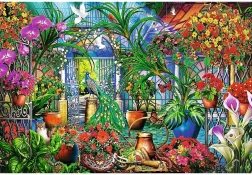 Laat je onderdompelen in de wereld van kunst met levendige motieven van Ciro Marchetti, die je meenemen naar een betoverende tuin.