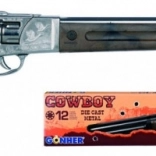 Dit cowboy metalen geweer voor 12 patronen met trommel is ideaal voor themaspellen, kostuums en verzameluitstallingen. De robuuste metalen constructie en zorgvuldige afwerking van Gonher zorgen voor een authentieke uitstraling en een lange levensduur.