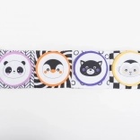 Pluche flapjes met knispergeluid zorgen voor auditieve prikkels en plezier in ontdekken – eronder vindt het kind symbolen van het voedsel van de dieren.