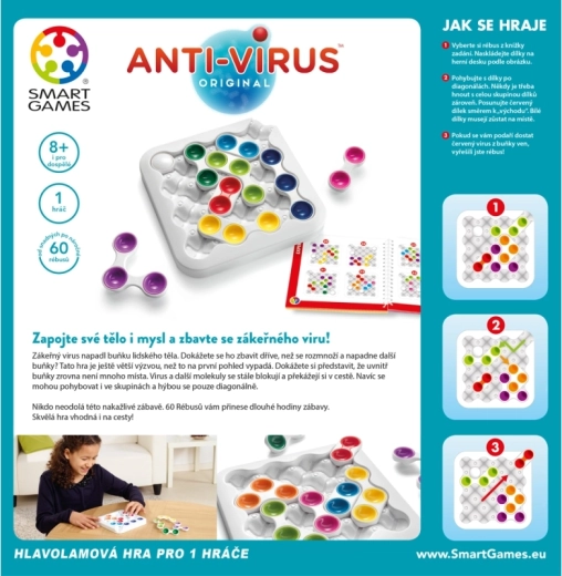 Dit spel uit de Smart Games-reeks neemt je mee in een menselijke cel die door een virus is geïnfecteerd. Om de taak succesvol te volbrengen, moet je het virus elimineren voordat het zich vermenigvuldigt. Het spel is ontworpen als een logische uitdaging met meerdere niveaus die je probleemoplossend vermogen test in een beperkte ruimte, waar moleculen constant botsen en diagonaal bewegen.