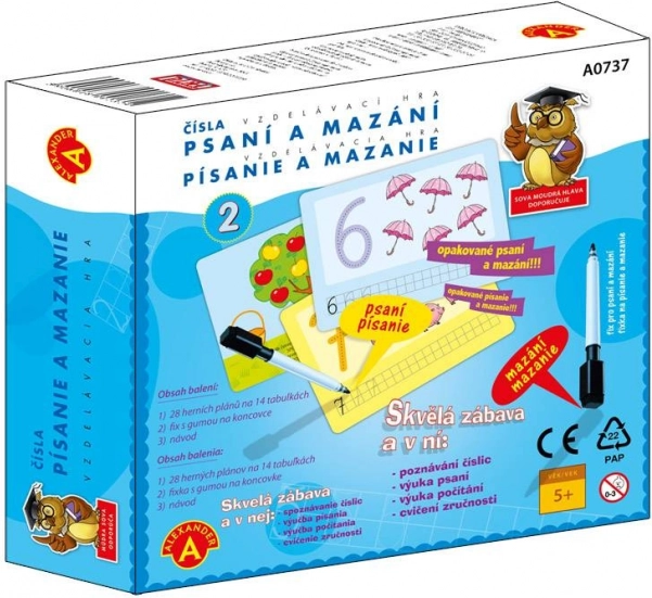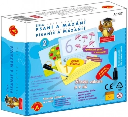 - 14 dubbelzijdige kaarten (28 motieven), uitwisbare stift met sponsje, handleiding in het Tsjechisch en Slowaaks