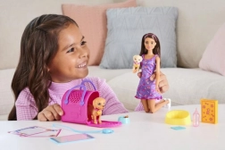 De Barbie pop met beweegbare knieën zorgt voor realistisch spel en verzorging van nieuwe huisdieren.