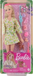 Barbie weet dat de beste zorg de zorg voor jezelf is! Deze set met pop en accessoires viert Barbie’s favoriete manier om weer op te laden in de spa. De Barbie Wellness-pop voor in de spa draagt een schattige badjas met citroenprint en is uitgerust met alles wat je nodig hebt voor een ontspannende spadag, waaronder badproducten, borstels, kaarsen en een oogmasker – er is zelfs een oogmasker voor haar puppy! De pop kan niet zelfstandig staan. Kleuren en details kunnen variëren. Leeftijd 3+