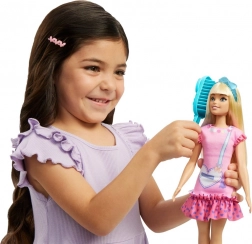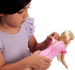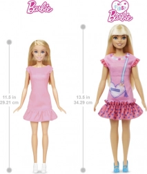 Stap binnen in een wereld waar vriendschap begint en fantasie geen grenzen kent. De pop uit de lijn Mijn eerste BARBIE is groter, licht en prettig flexibel, zodat kleine handjes haar gemakkelijk kunnen vasthouden, aankleden en in poses zetten. De roze jurk is versierd met speelse details zoals ruches en een print van een hartvormige handtas, met een bijpassende haarband en schoentjes. Het lange blonde haar nodigt uit om te kammen en kapsels te creëren, wat de fijne motoriek op een natuurlijke manier bevordert.