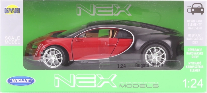 Ontdek het gedetailleerd uitgevoerde model van de legendarische BUGATTI CHIRON op schaal 1:24. De combinatie van metalen en kunststof onderdelen zorgt voor stevigheid en een realistische look, terwijl de originele autolak het model een echte automobielglans geeft.