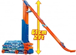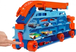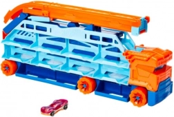 Beleef dubbel zoveel actie met een transporter die verandert in een zwaartekrachtbaan! De grote wagen op zes robuuste wielen vervoert en bergt je hele verzameling veilig op, en met één handeling verander je hem in een 60 cm-afdaling voor adrenalineverhogende races.