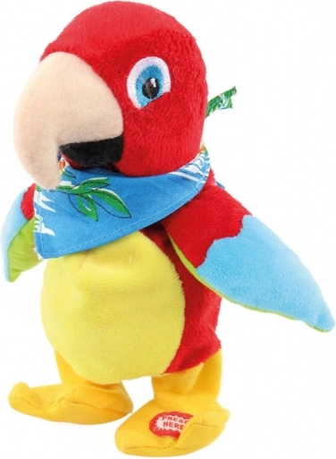 Leuke interactieve papegaai die loopt en alles nadoet wat hij hoort. Druk op de knop in zijn poot en de papegaai herhaalt je woorden met een vervormde stem. In vrolijke kleuren, 22 cm hoog, ideaal speelgoed voor kinderen vanaf 3 jaar.