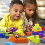 In de doos vind je 150 grote blokken, inclusief speciale elementen: een onderstel met wieltjes voor voertuigen, blokken met oogjes voor speelse figuurtjes, blaadjes voor natuurthema’s en dakelementen voor gebouwen. Alles is volledig compatibel met andere MEGA BLOKS-sets, zodat de set naar wens kan worden uitgebreid.