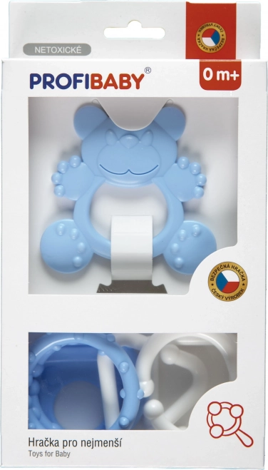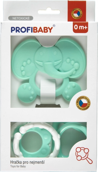 Deze set in pastelkleuren is ontworpen om baby’s veilig verlichting te bieden bij doorkomende tandjes en tegelijk hun zintuigen te ontwikkelen. Lichte materialen en gladde vormen zijn zacht voor mond en tandvlees, liggen goed in de hand en ondersteunen de fijne motoriek.