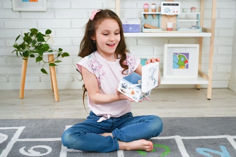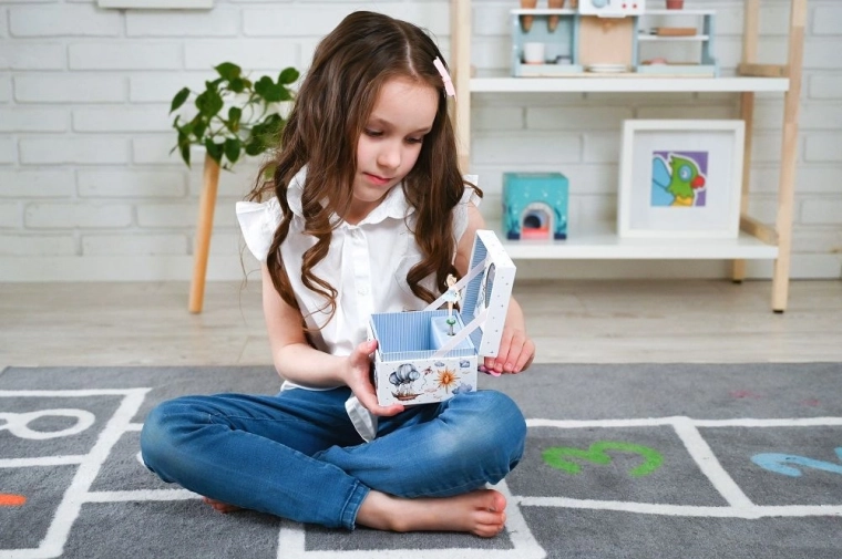 Het doosje verwent niet alleen het oog, maar ook het oor met melodieën die beginnen te spelen zodra je het opent.