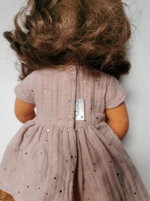 Schattig mousseline jurkje voor poppen van 38 cm in een zachte roze kleur. Gemaakt in Polen van een prettig materiaal met een fijne structuur. Eenvoudig te onderhouden – kan op lage temperatuur worden gestreken, bij voorkeur met stoom behandeld om de textuur van de stof te behouden. Geschikt voor kinderen vanaf 3 jaar en voldoet aan CE.