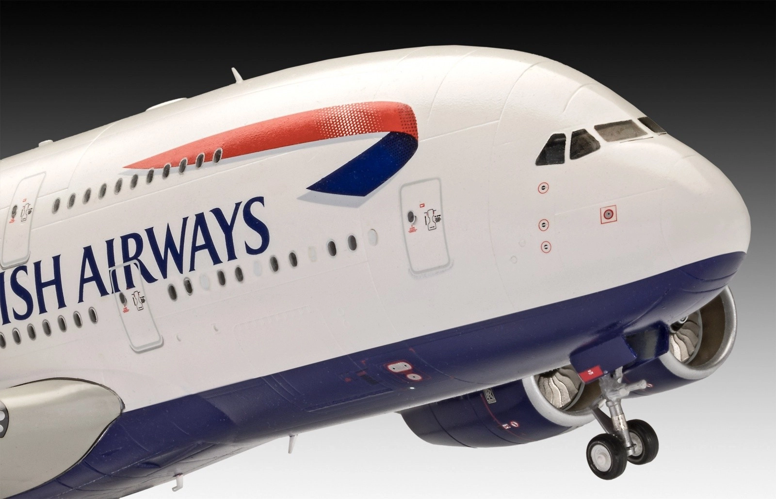 Het plastic model van het dubbeldeks, widebody langeafstandsvliegtuig AIRBUS A380-800 in de klassieke BRITISH AIRWAYS-livery zal elke fan van de civiele luchtvaart bekoren. De onderdelen zijn nauwkeurig passend en voorbereid voor een nette bouw; het resultaat is een indrukwekkend model van het legendarische passagiersvliegtuig.