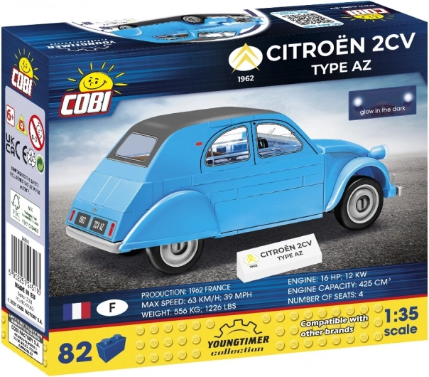 De bouwset Citroën 2CV Type AZ in schaal 1:35 is een nauwkeurige replica van de cultauto uit 1962. Het model biedt: