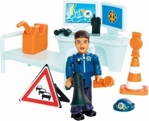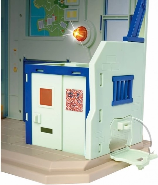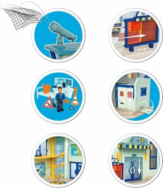 De politiepost uit de nieuwste versie van Brandweerman Sam biedt talloze speelmogelijkheden: er is een parkeerplaats voor een jeep, een gevangenis met een uitbraakmuur, een lift, een alarm, een helikopterlandingsplatform, en zowel de begane grond als de bovenverdieping zijn ingericht met meubels.