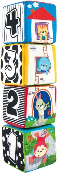 - 4 zachte blokken met textiel en schuimvulling voor veilig spelen.