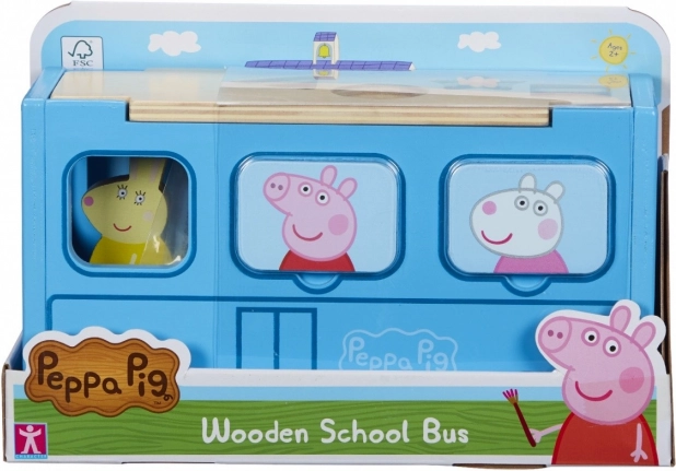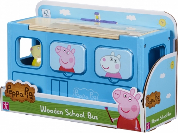 De houten schoolbus PEPPA PIG is een complete educatieve speelgoedset die bewegingsplezier combineert met slim spel. Kinderen kunnen vormen in de juiste openingen plaatsen, magnetische afbeeldingen van passagiers op de ramen zetten en dankzij de draaiende wielen echt met de bus rijden.