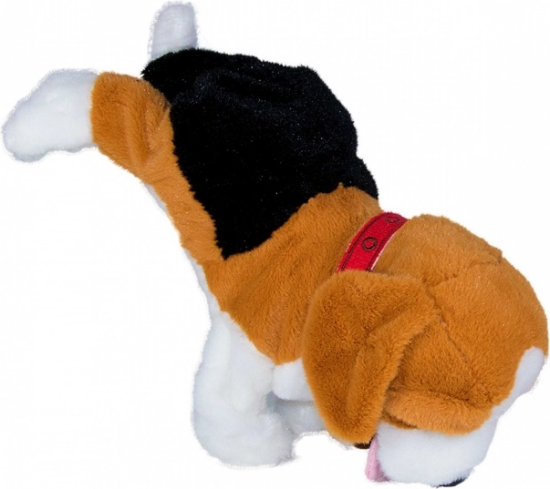 De kenmerkende beagle-kleuring in combinatie met het zachte materiaal nodigt uit om te knuffelen. De gedetailleerde afwerking van snuit, oortjes en de sprekende oogjes versterkt de band van het kind met het speelgoed.