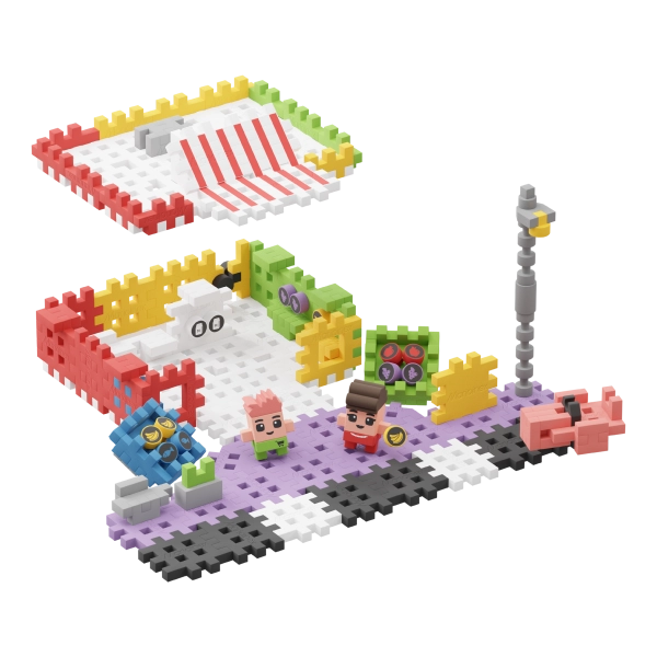 De winkelspeelset bevat wel 148 bouwstenen en twee originele figuren, van wie er één zich in het zweet werkt om de bewoners van verse etenswaren te voorzien. Zet de set in elkaar volgens de instructies en combineer hem met andere sets uit de Wafel City-serie, die samen de stad tot leven brengen. Natuurlijk niet zonder hulp van jullie fantasie! En als jij en je kleine jongen op een nieuw idee komen, kun je met de elementen van de set een geheel nieuw en fascinerend bouwwerk maken.