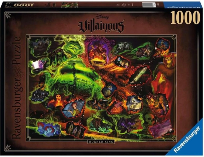 Ravensburger puzzel Villainous: Gehoornde Koning met 1000 meesterlijk vervaardigde stukjes nodigt je uit op een boeiende reis vol strategie en vindingrijkheid. Deze betoverende puzzel is ontworpen om kinderen vanaf 12 jaar te vermaken en uit te dagen, en ondersteunt de ontwikkeling van cognitieve vaardigheden en geduld.