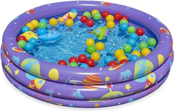 Dit kleurrijke Bestway Intergalactic zwembad is ontworpen om kinderen niet alleen buiten plezier te laten beleven, maar ook van het water te laten genieten. Met drie gelijk grote opblaasbare ringen met kleurrijke graphics en een capaciteit van 140 liter biedt het veel vreugde.