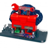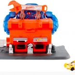 Ga naar de autogarage en probeer je auto te repareren, maar pas op! Binnen wacht een angstaanjagende gorilla! Elke set kan worden verbonden met andere Hot Wheels City-sets via het nieuwe systeem en is compatibel met de oranje baan.