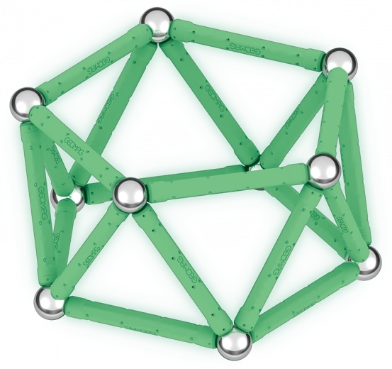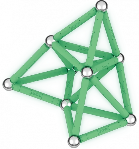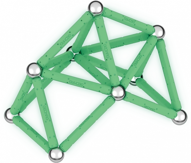 GEOMAG Glow is een originele magnetische bouwset waarmee je een onbeperkt aantal constructies kunt maken met magnetische staafjes en stalen kogeltjes. Dankzij de fosforescerende onderdelen zullen je modellen na het opladen in het donker prachtig licht geven – ideaal voor leuke experimenten en aantrekkelijke demonstraties.