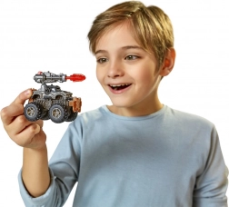 Eenvoudig te monteren truck met massieve banden, gedetailleerde carrosserie en een werkende launcher voor gevechten en stunts.