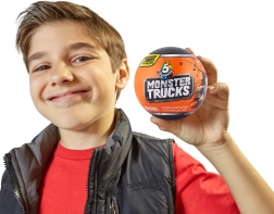 Ontdek de adrenalinekick van MONSTER TRUCKS 5 SURPRISE – in elke ronde capsule zitten 5 verrassingen om je eigen mini-truck te bouwen met verwisselbare onderdelen en een werkende schietende launcher. Willekeurig design, prijs per 1 stuk.