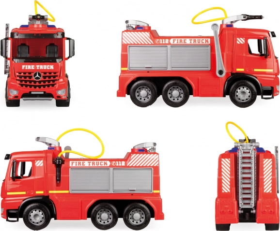 Praktische details zoals de draaibare en afneembare vernevelaar op het dak, de uitklapbare ladder en de eenvoudige bediening met de hendel aan de zijkant ondersteunen actief spel en coördinatie. Het speelgoed is veilig, getest en geschikt voor binnen en buiten.