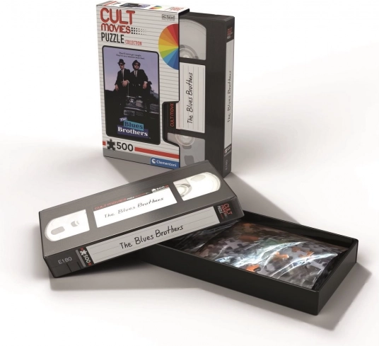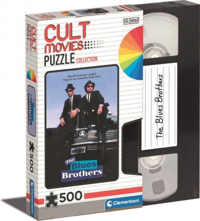 CLEMENTONI Cult Movies: The Blues Brothers – puzzel 500 stukjes in retro VHS-verpakking. Kwaliteitsdruk, geweldig cadeau voor filmliefhebbers. Afmeting 36 × 49 cm.
